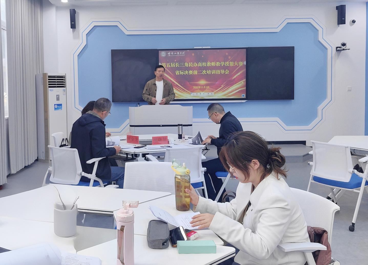为进一步夯实参赛基础,以最佳状态迎接第五届长三角民办高校教师教学技能大赛省际决赛,11月4日,我校在格物楼智慧教室举办了赛前第二轮培训指导会。会议再次邀请教学创新大赛国赛一等奖获得者廖晓慧老师及校内多名资深专家组成指导团队,聚焦实战模拟,为参赛教师提供更具针对性的赛前赋能。副校长汪时珍、教务处相关负责人、相关学院教学副院长及全体参赛教师共同参与了本次活动。会议由教务处处长经庭如主持。