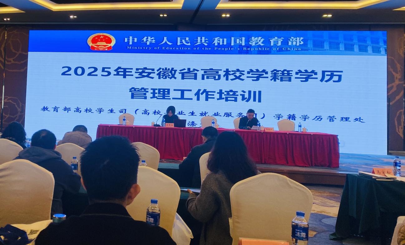 11月27日,由安徽省教育厅主办的2025年安徽省高校学籍学历管理工作培训会在阜阳市举行。我校教务处副处长刘众一带领本科学籍学历管理员一同参加了此次会议。
