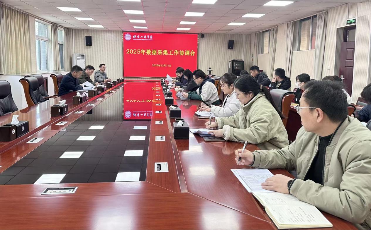 为确保2025年高等教育质量监测数据采集工作高质量完成,我校于12月11日上午在行远楼五楼视频会议室召开专项工作协调会。副校长汪时珍出席会议并讲话,相关学院负责人、职能部门负责人及数据采集员参加会议。会议由教务处处长经庭如主持。
